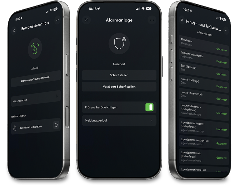 Ob von unterwegs oder von der Couch – mit der Loxone App steuern Sie Ihre Alarmanlage intuitiv. Sollte etwas passieren, werden Sie nicht nur per Push-Nachricht informiert, sondern können sich vom System sogar anrufen lassen. Durch individuelle Alarmierungsketten geht kein Notruf ins Leere. Sie wissen sofort, was los ist, und können direkt reagieren.